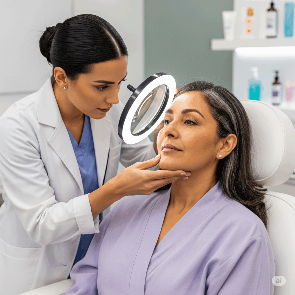 Evaluación y diagnóstico ( lupa y lámpara) para observar las características y el tipo de piel